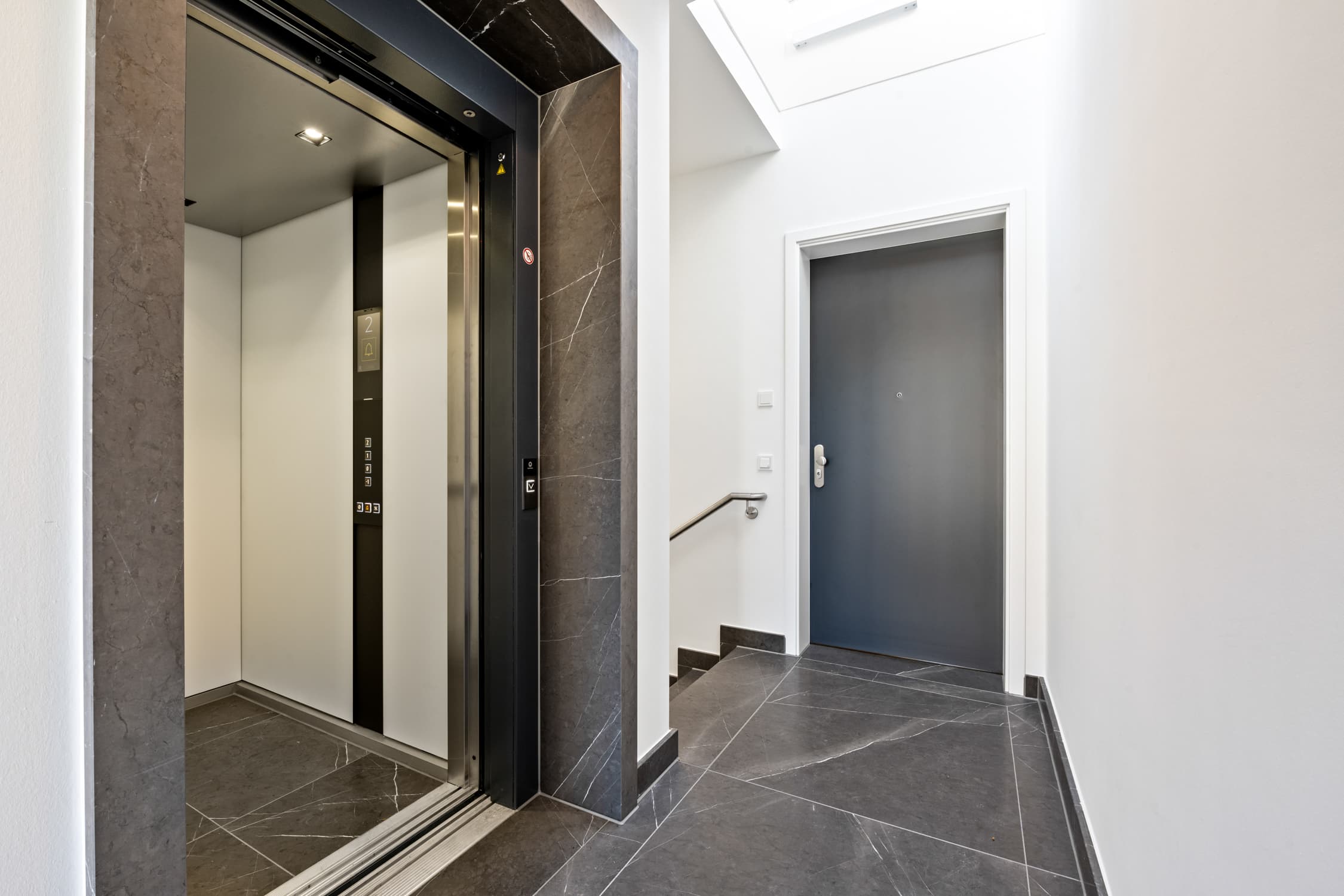 Ein Aufzug, der aus der Tiefgarage jede Wohnebene erreicht, große lichtdurchflutete Terrassen und Balkone sowie das Unterschreiten der Werte der aktuellen Schall- und Wärmeschutzvorschriften gewährleisten ein besonders angenehmes und ruhiges Wohnen.
